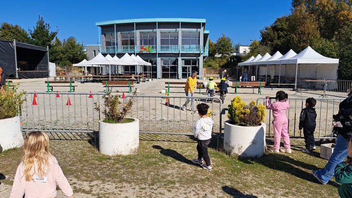 Début juin les 5 classes de maternelles de Stéphane-Hessel ont récolté les légumes, visité le rucher et rigolé avec les vélos.