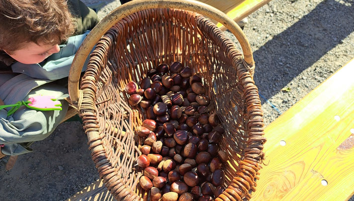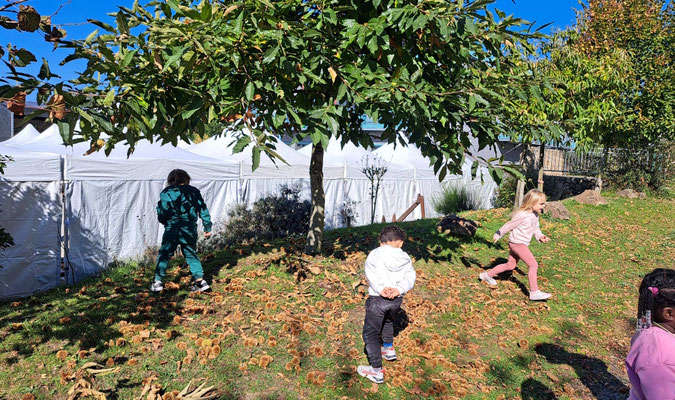 2 classes GS MS ont pique-niqué sur notre site. Elles ont découvert la biodiversité de notre terrain: abeilles, oiseaux , jardin et notre châtaignier. Les élèves de l'école des Châtaigniers de Nantes ont récolté quelques châtaignes sous ce beau soleil.