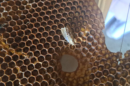 Des fausses teignes (papillon de nuit) dont les larves dévorent la cire des abeilles ont impressionné les écoliers.