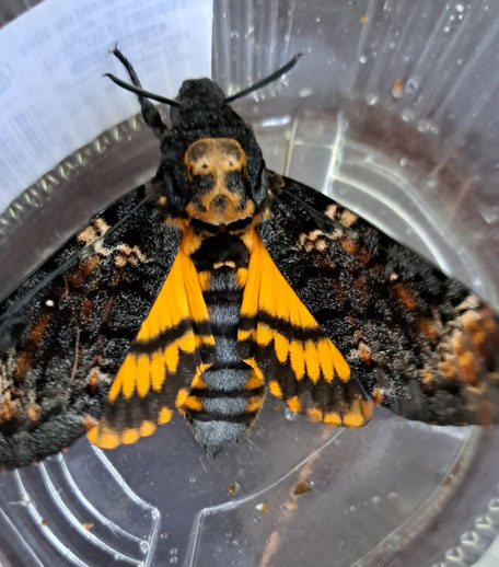Le sphinx tête de mort est un gros papillon de nuit qui vient d'Afrique. Il adore le miel, nous l'avons observé dans notre rucher le jour de la fête des châtaignes
